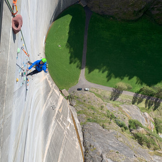 Un'incredibile esperienza quella di arrampicare nell'immensa parete di cemento della diga del Luzzone.